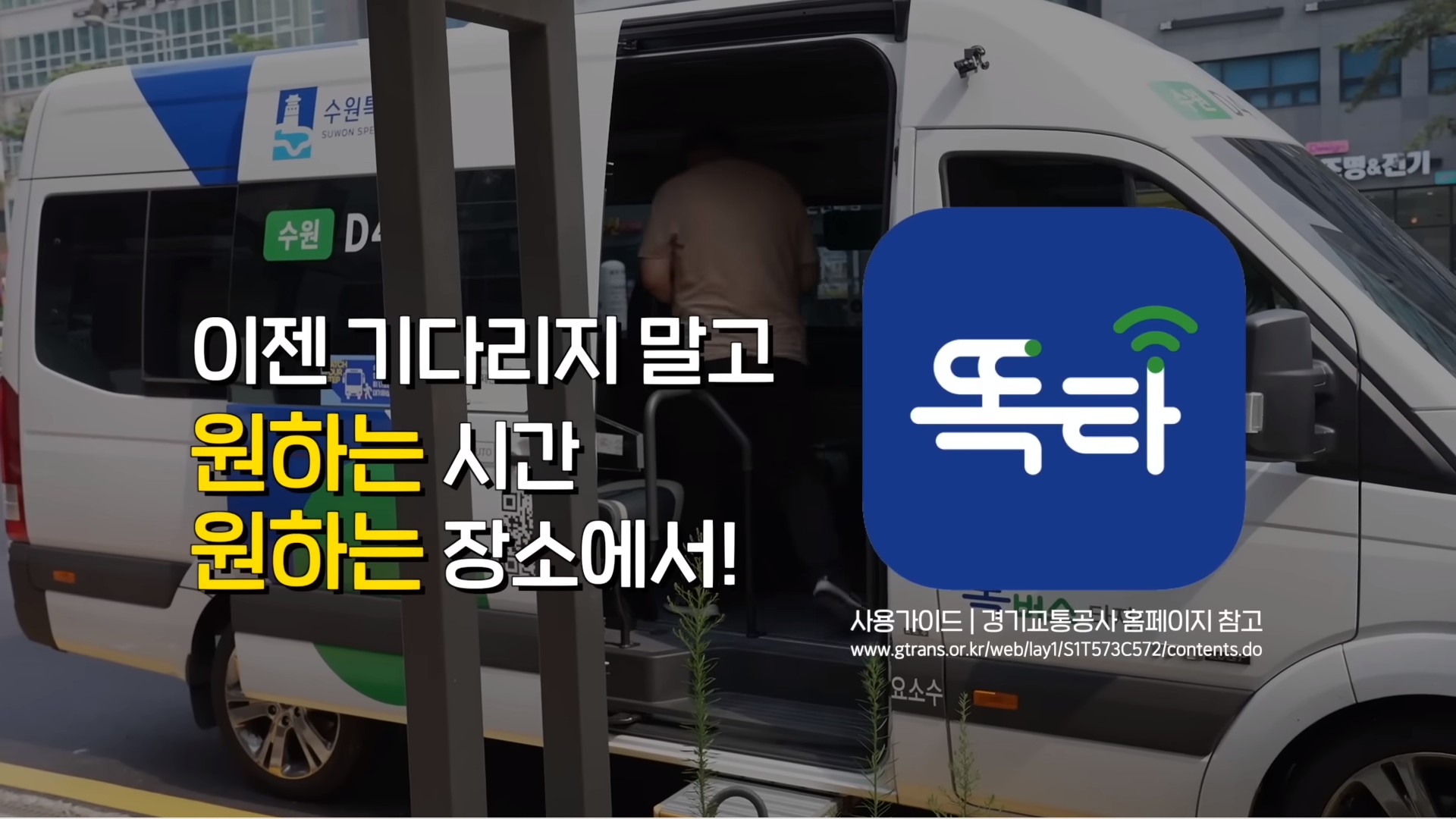 경기도형 DRT 똑버스는 원하는 시간에 원하는 장소에서 원하는 목적지까지 이동할 수 있는 수요응답형 교통체계입니다. 시내버스와 콜택시의 개념을 합쳤다고 생각하시면 되는데, 입주 초기 신도시나 농어촌 지역 등 시내버스 이용이 불편한 지역에 사는 주민들을 위한 교통 복지를 실현할 수 있을 것으로 기대됩니다.