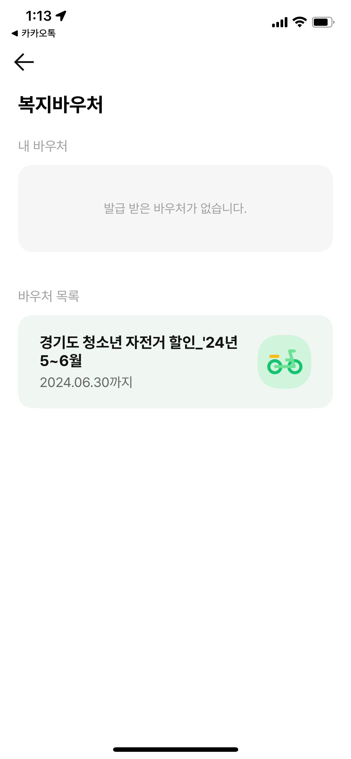 - 전기자전거 이용시 경기도 거주자인 13~23세 청소년은 복지바우처를 적용하여 매 이용시 1천원, 6개월 내 최대 6만원까지 할인 받을 수 있습니다.