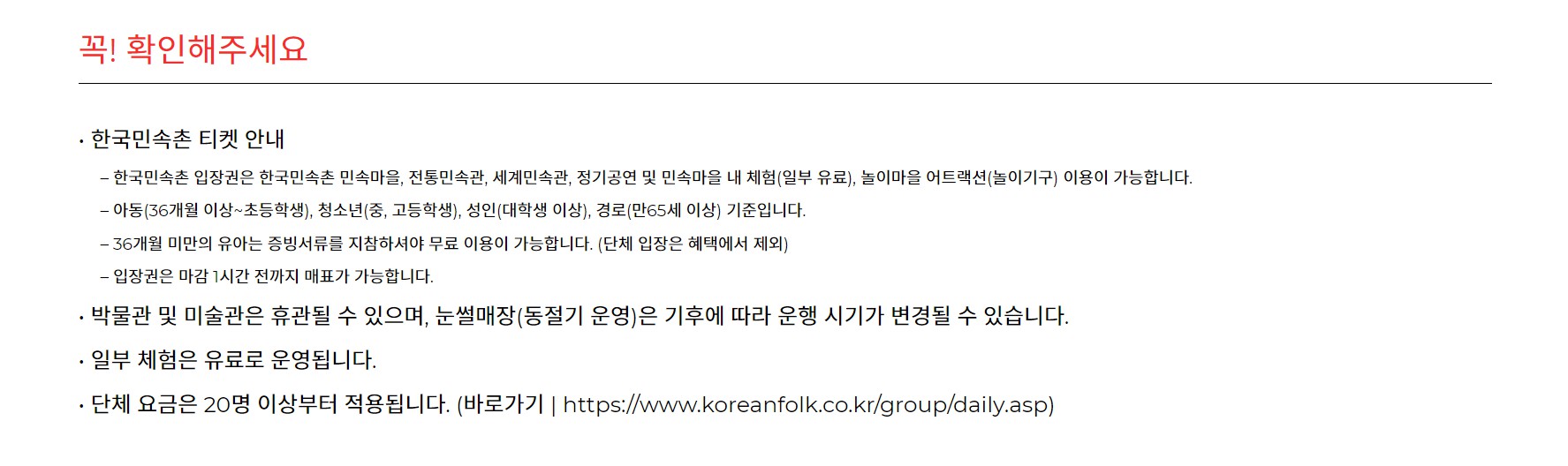 - 한국민속촌 카카오톡 플러스친구 맺고 현장에서 할인 받으세요.