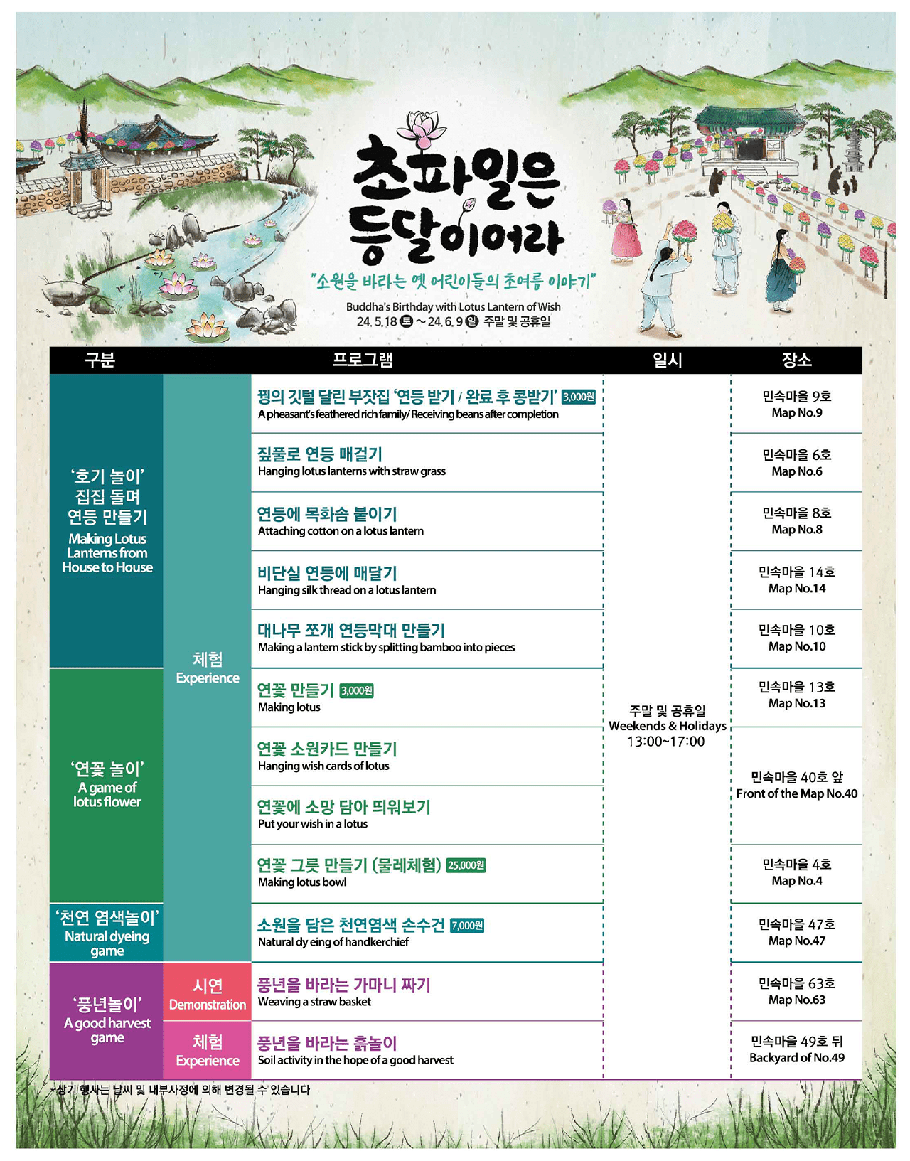 아래 이미지에 체험 리스트가 정리되어 있으니