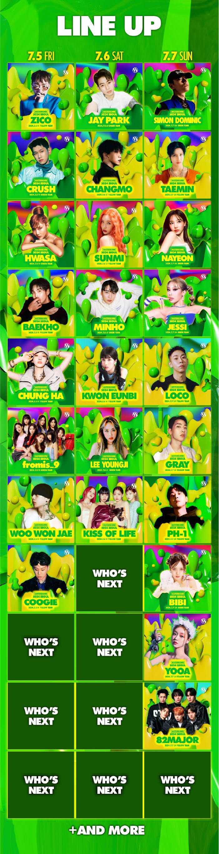 지코, 크러쉬, 화사, 백호, 청하, 프로미스나인, 우원재, 쿠기